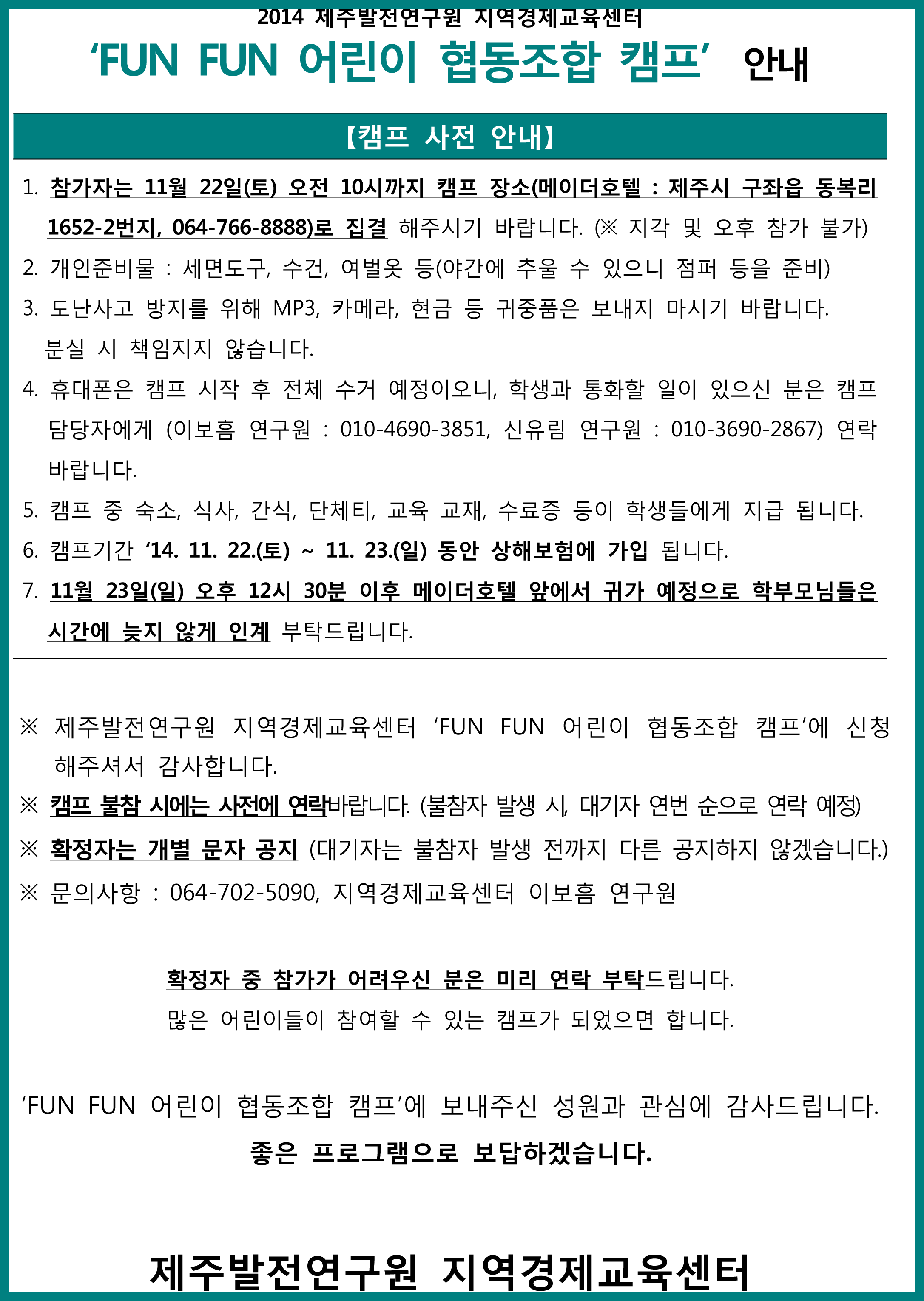'FUNFUN 어린이 협동조합캠프' 사전안내