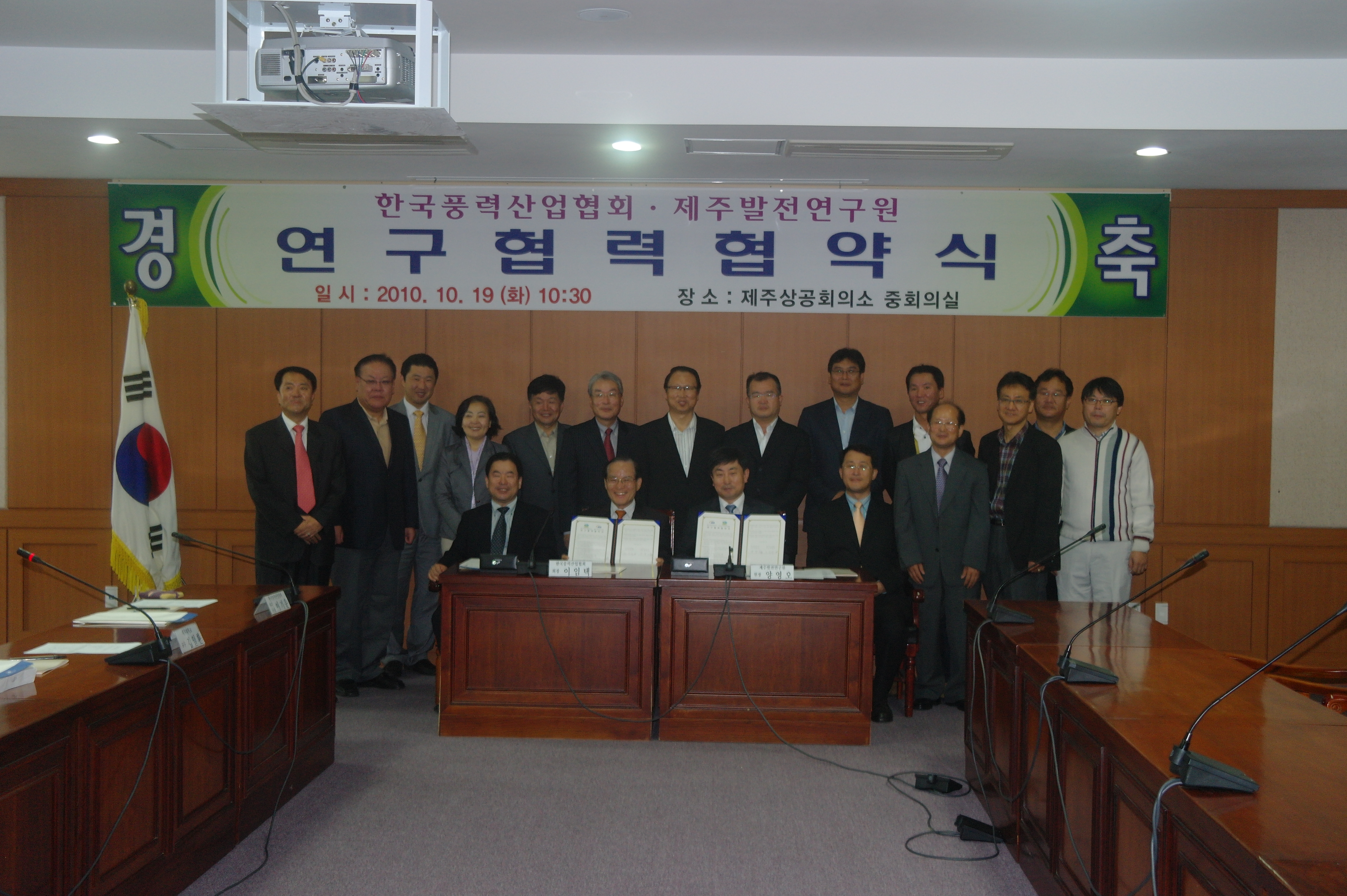 제주발전연구원-한국풍력산업협회와 연구협력 협약식 개최 - 2010년 10월 19일(화), 제주상공회의소 4층 |