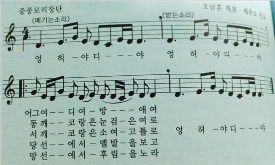 다름이 아니라 싣고자 하는 악보가 제주도 민요로