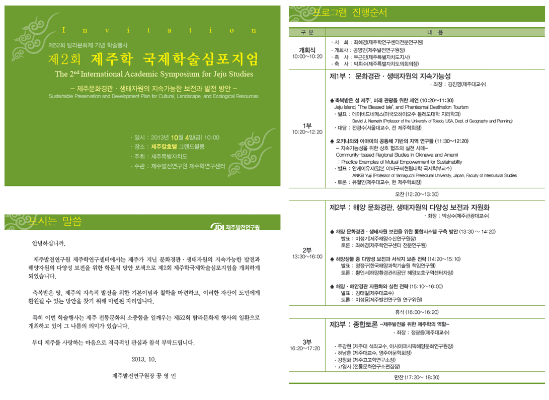 제2회 제주학 국제학술심포지엄 -제주문화경관·생태자원의 지속가능한 보전과 발전 방안-