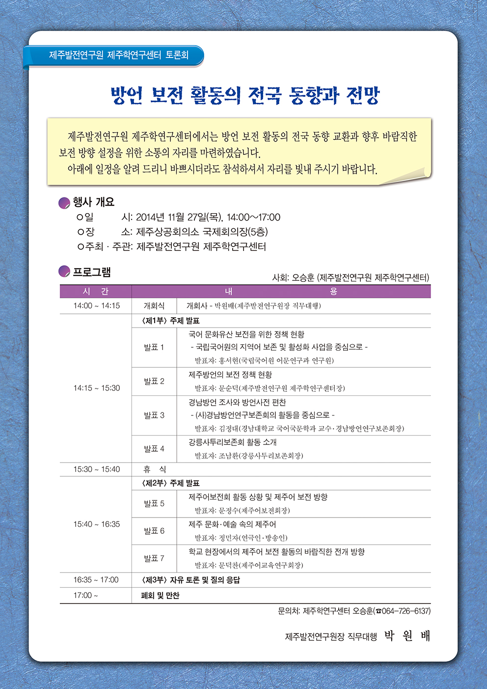 방언 보전 활동의 전국 동향과 전망 -제주학연구센터 토론회-