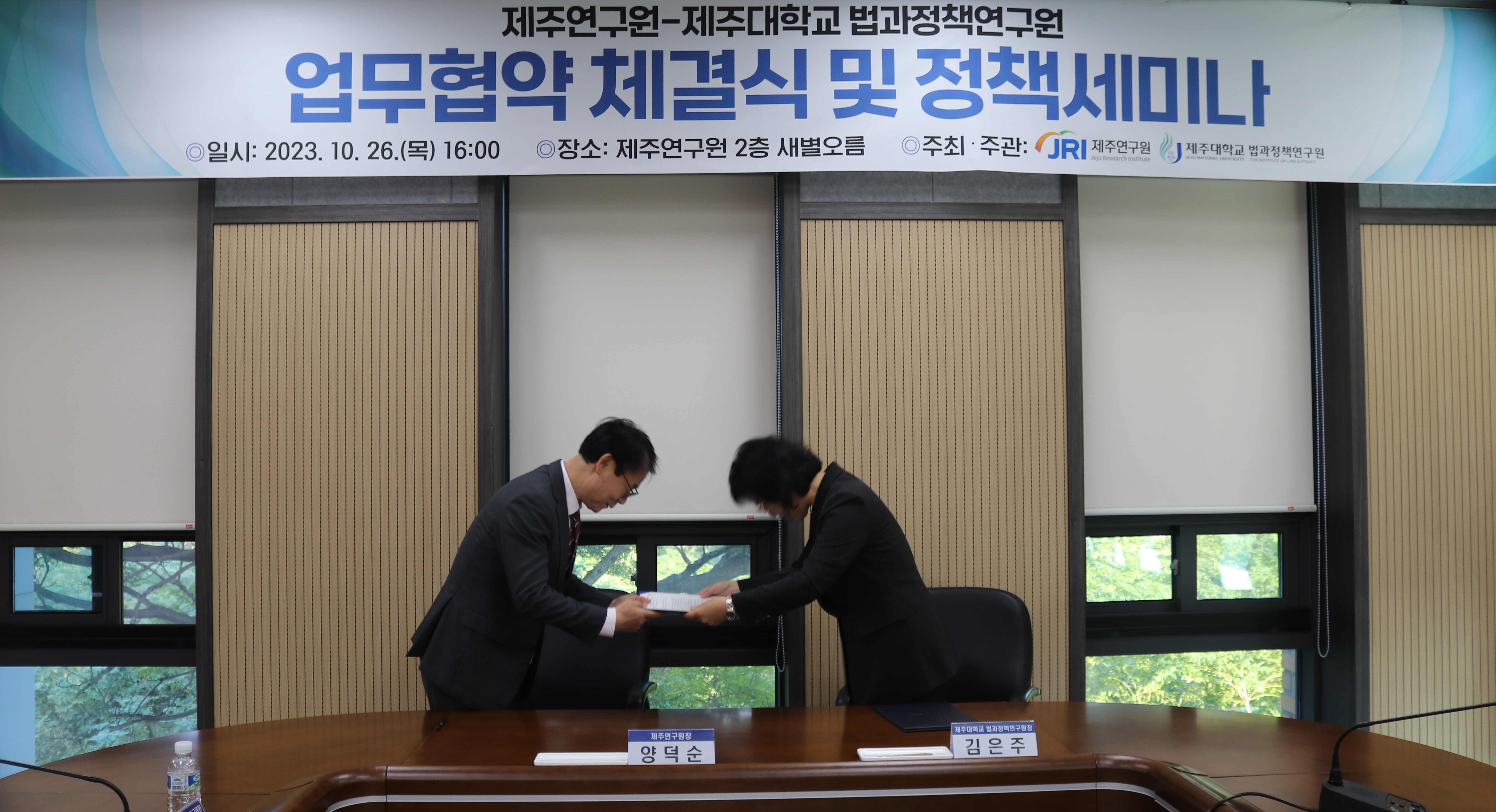 ○ 행사명 : 제주연구원-제주대학교 법과정책연구원 업무협약 체결식 및 세미나