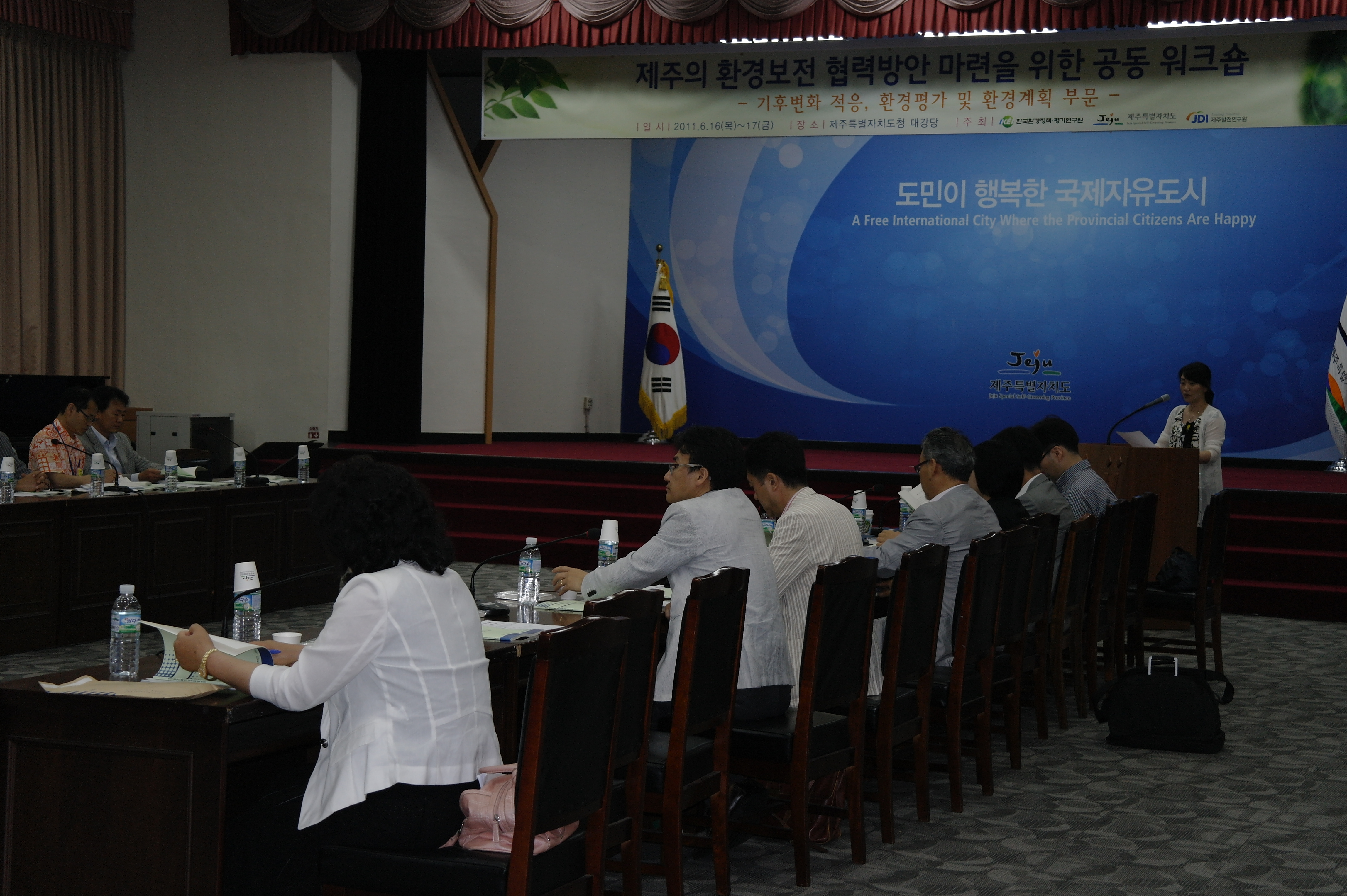 제주의 환경보전 협력방안 마련을 위한 공동 워크숍 - 기후변화 적응, 환경평가 및 환경계획 부문 일시 : 2011.6.16(목) ~ 17(금) 장소 : 제주특별자치도청 대강당 주최 : 한국환경정책평가연구원 제주특별자치도 제주발전연구원