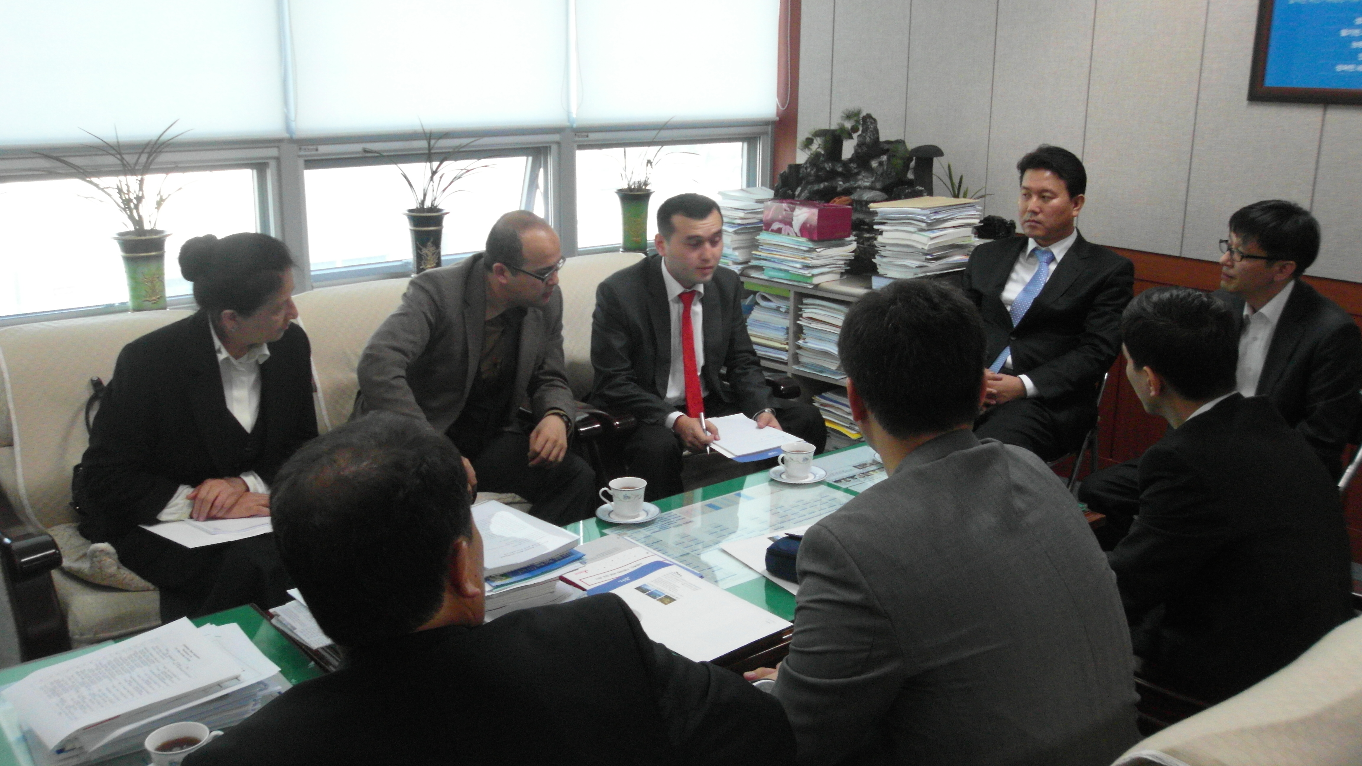 □양영오 제주발전연구원장은 2일 제주를 방문한 우즈베키스탄 은행연합회 하리로브 가이라트 라쟈보비치 회장단일행과 투자유치 및 정책 설명 간담회를 갖고 양 지역 발전을 위한 상호협력 및 의견 교환 .
