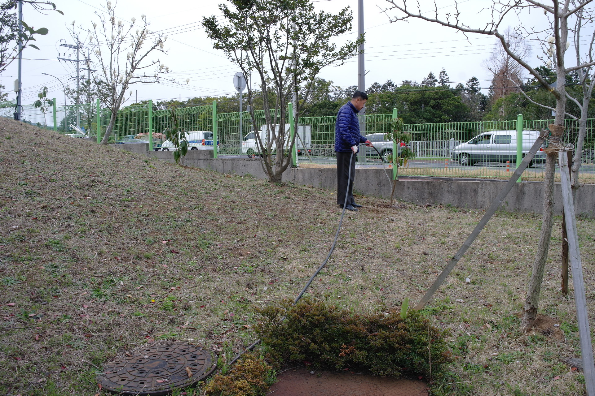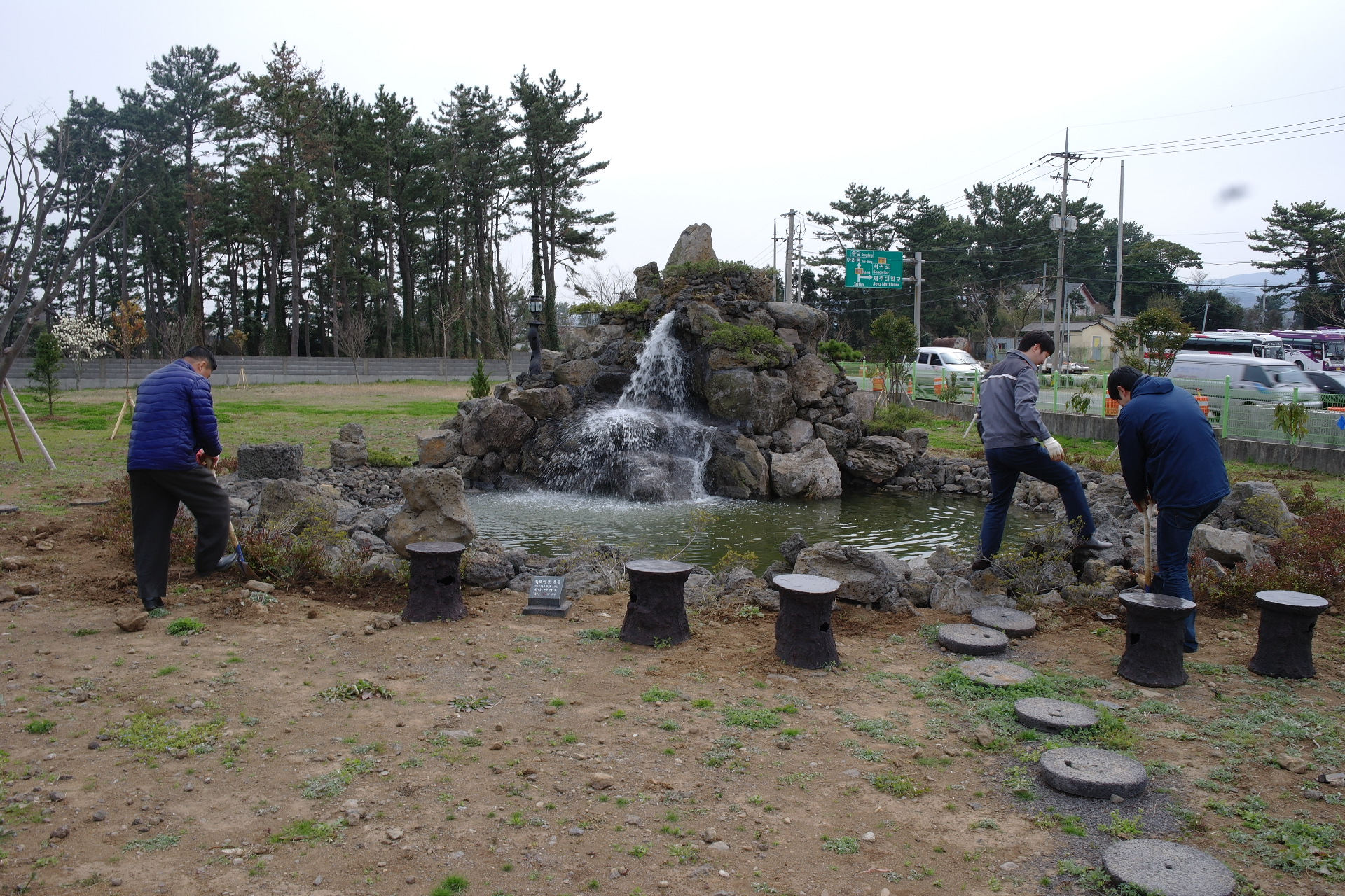 새 봄을 맞아 연구원 뒷화단과 폭포 연못 주변으로 철쭉과 제주도에 많이 자생하는 굴거리 나무등을 심어 연구원 화단이
