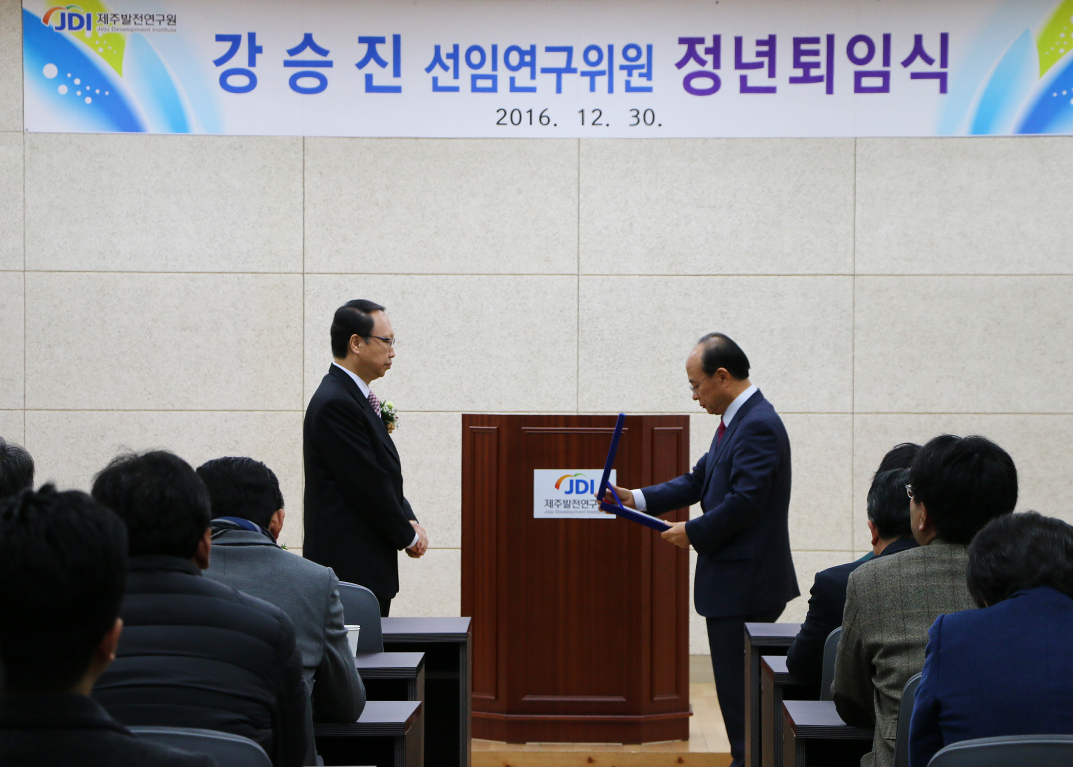 제주발전연구원은 12월30일 연구원 회의실에서 2016년 종무식과 함께 연구원 개원 이래 처음으로