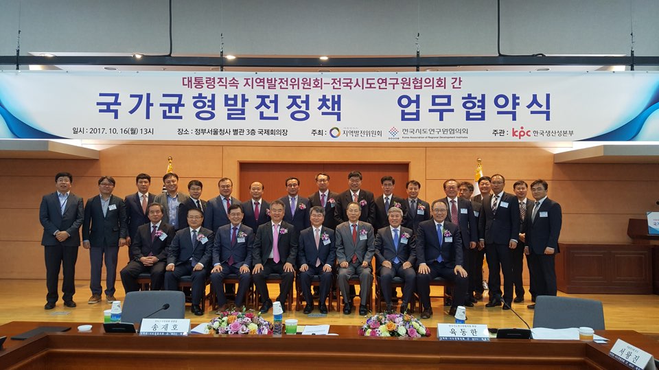 대통령직속 지역발전위원회 전국시도연구원협의회 간 국가균형발전 정책 업무협약식