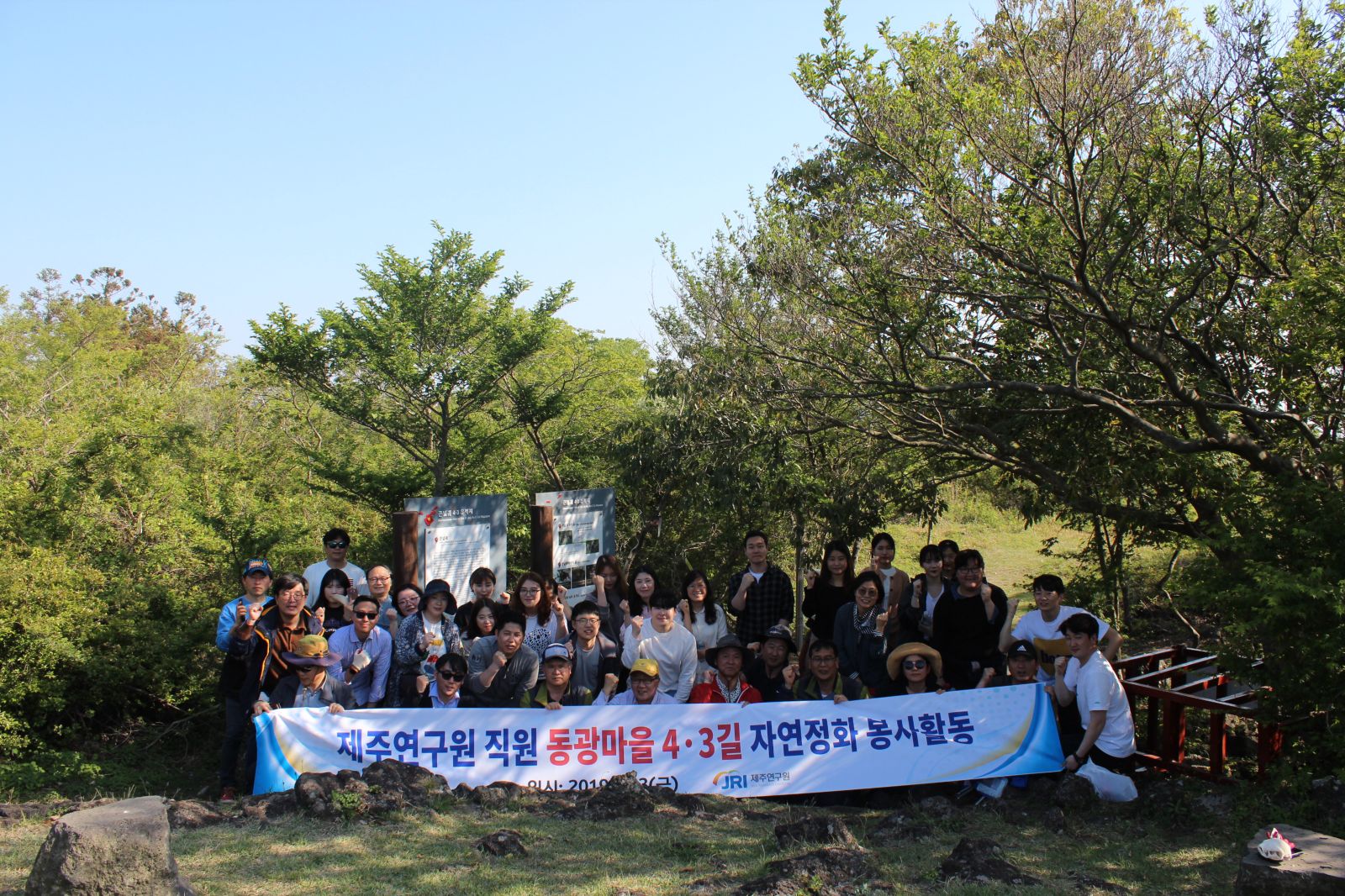 제주연구원 개원22주년을 맞이하여 전직원이 참여 하여 동광마을 4·3길 센터를 출발, 큰넓궤에 이르는 구간을 왕복하면서 자연정화 활동과 함께 동광리 지역주민들의 4·3 피해상황을 듣고 4·3의 의미를 되새김
